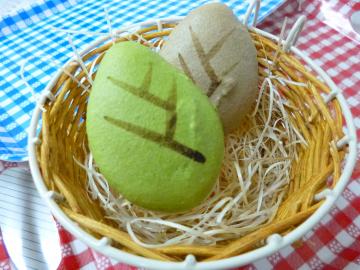 お茶のフレーバーのたけのこマカロンは、しっとり濃厚な味わいです。