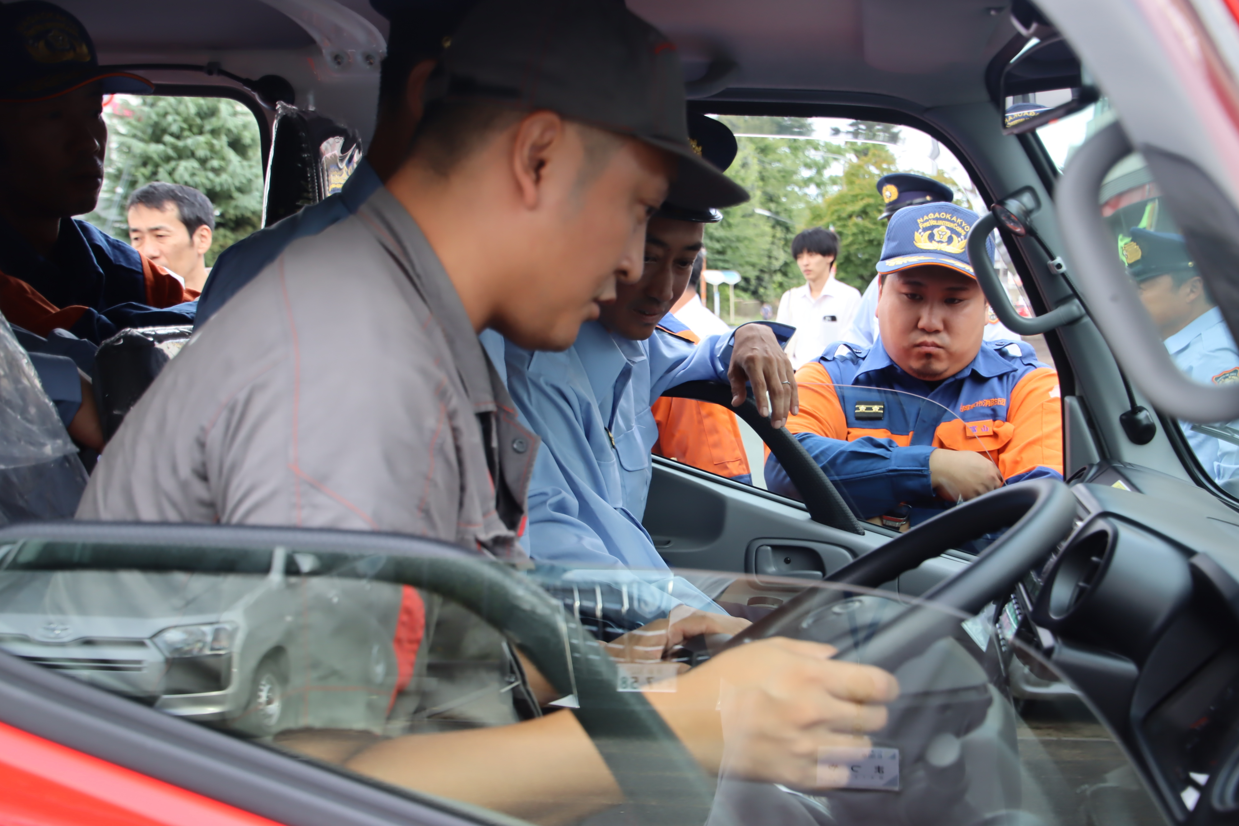 長岡京市消防団第1分団車は、車両整備計画に基づき更新したもので、トヨタ自動車の1トン級ダブルキャブオーバー型を採用し、乗車定員は6名を確保するとともに、オートマチックトランスミッションを採用して運転操作の軽減を図りました。
