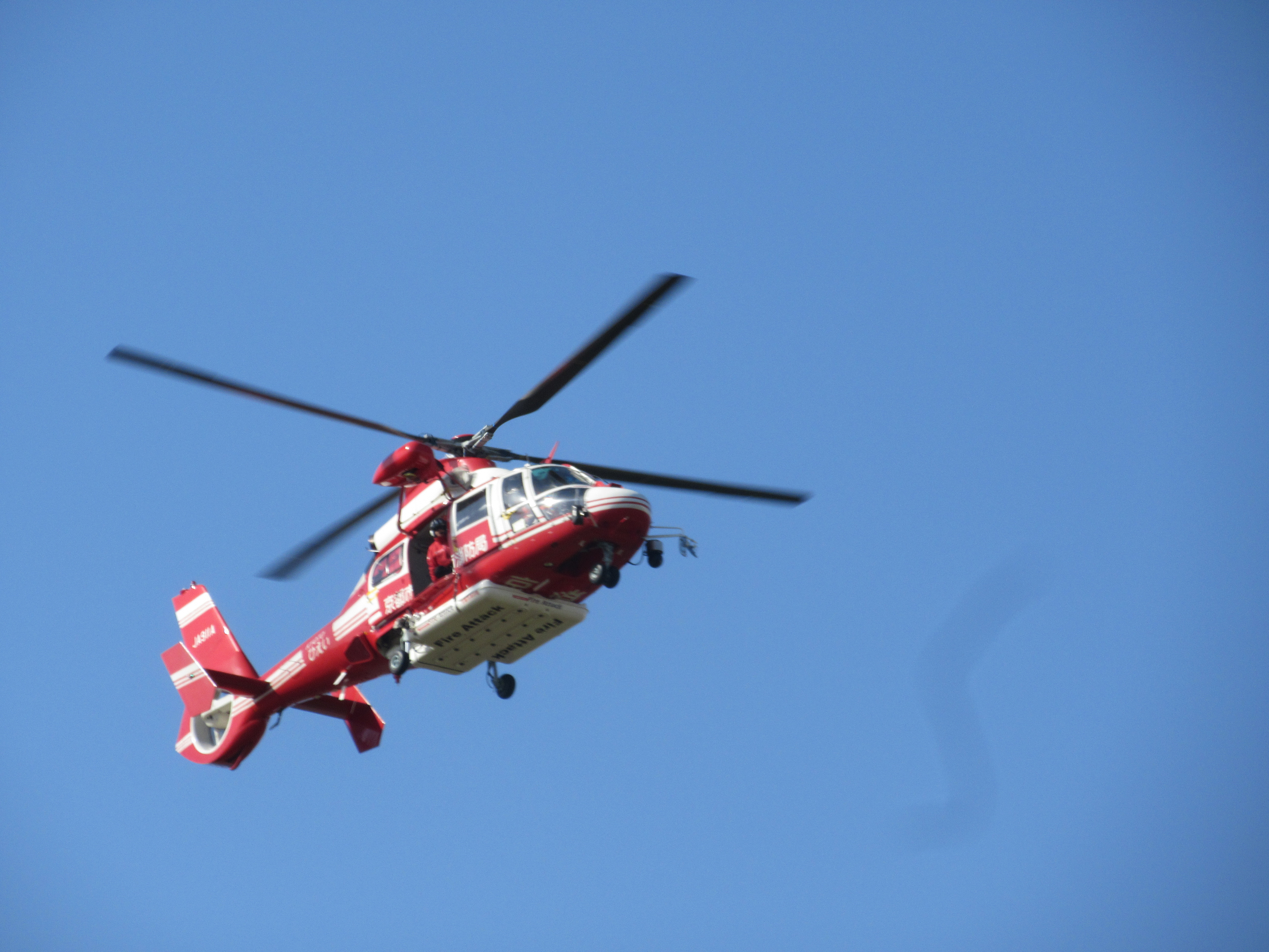 消防団から合計5か所の放水、消防・防災ヘリコプターからの空中消火は圧巻でした。