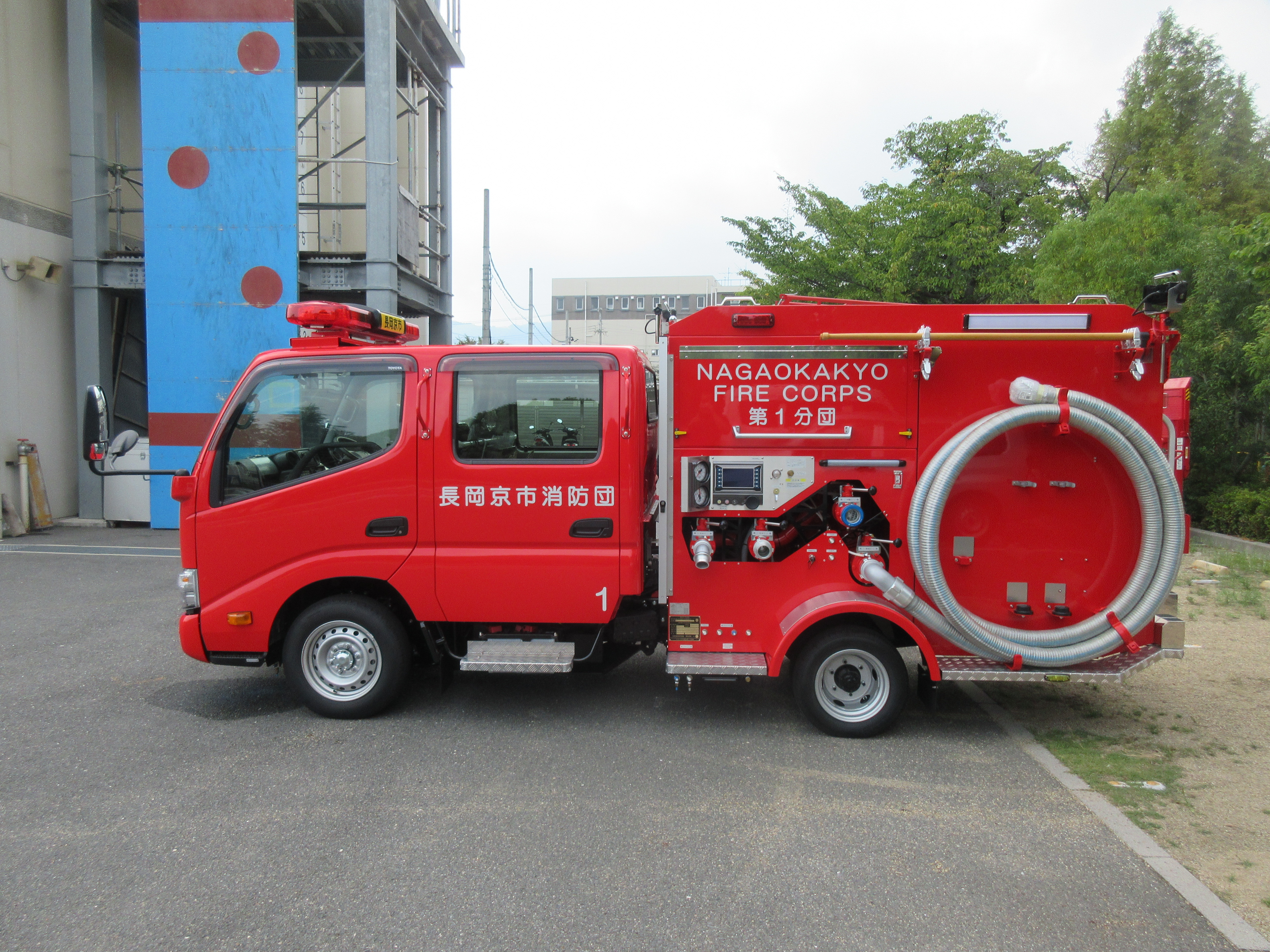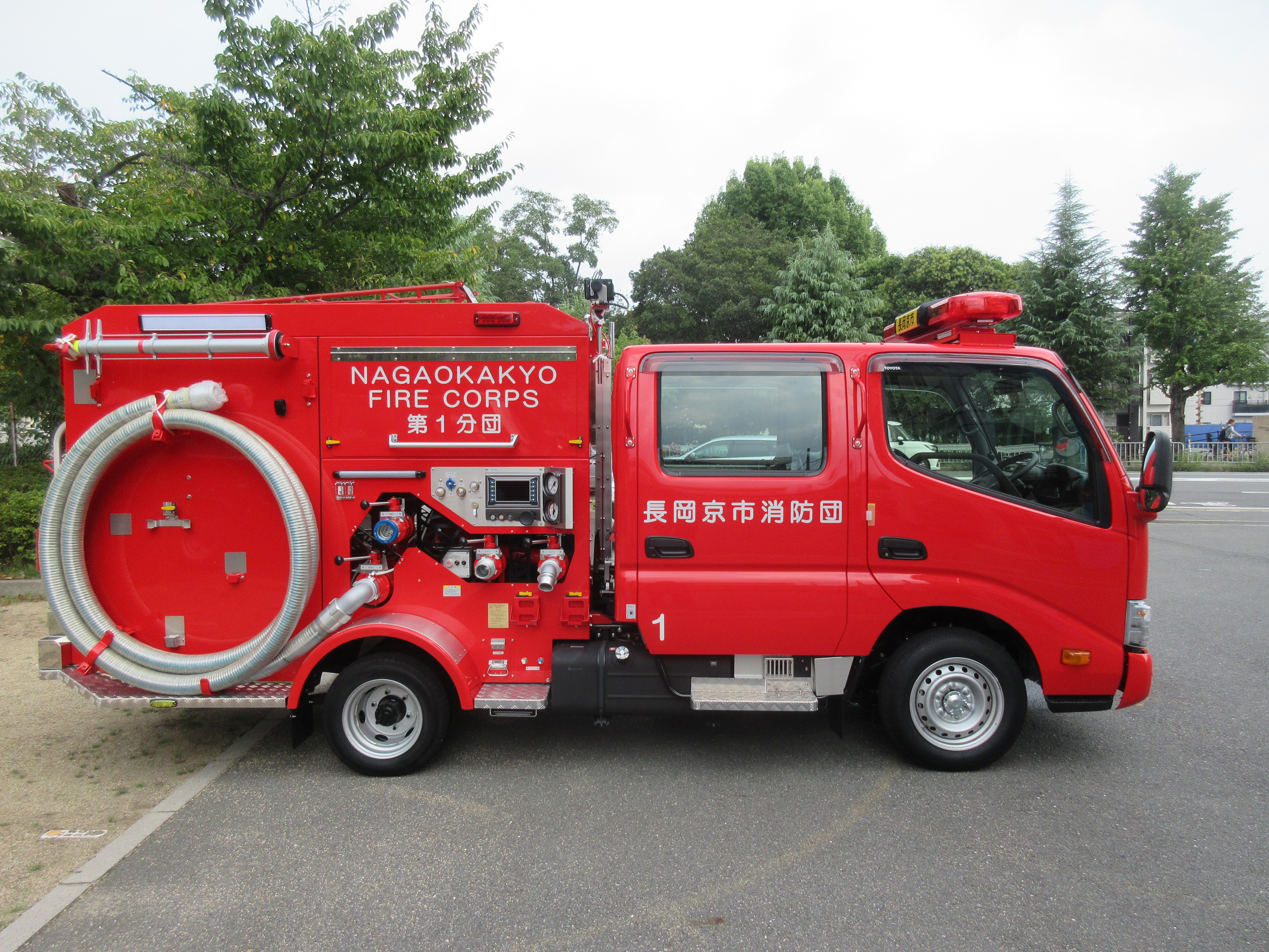 長岡京市消防団第1分団車の右側を撮影しました。