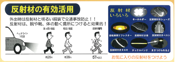 反射材を活用して、ライトも早めにつけましょう。
