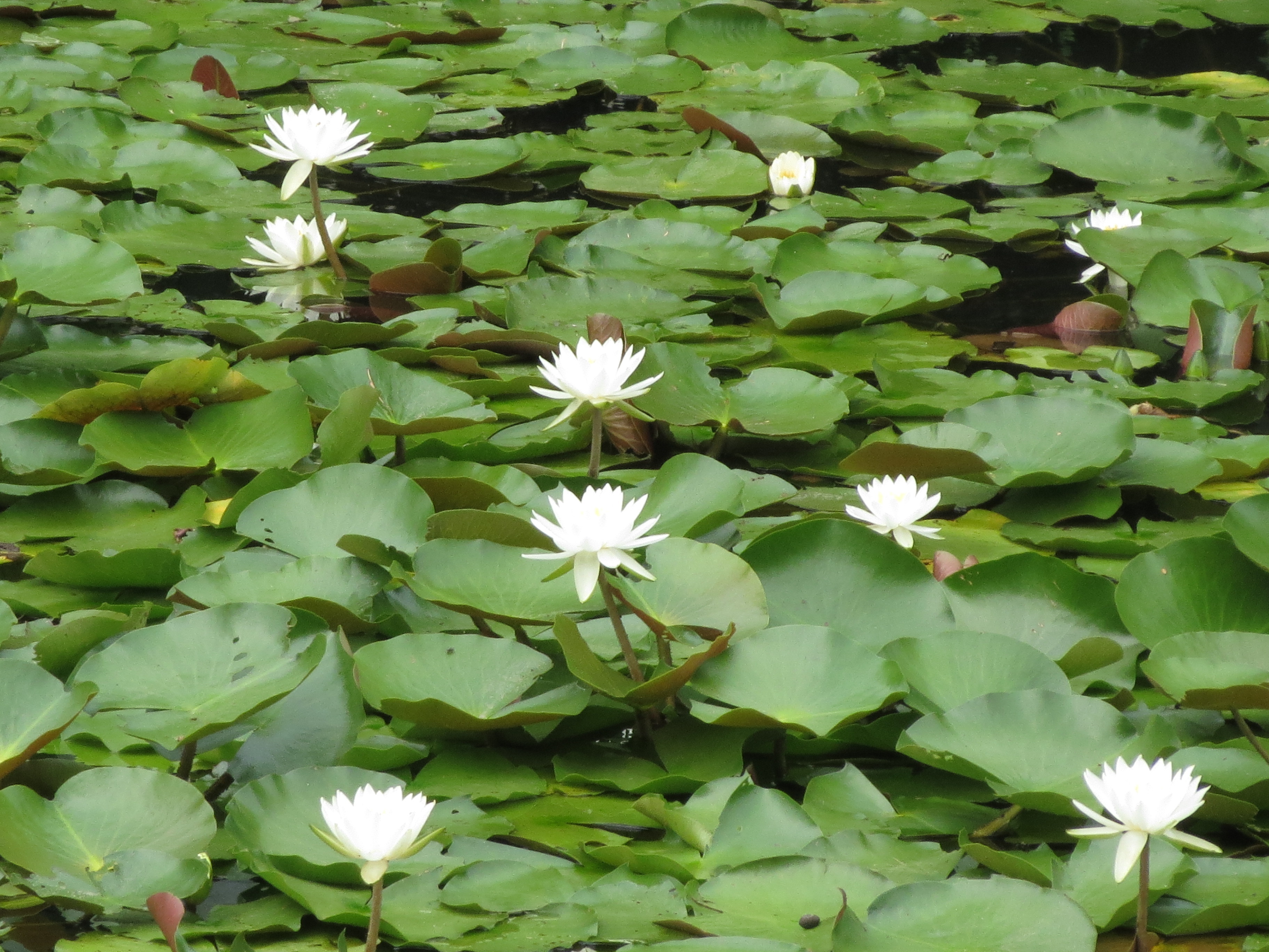 一見、ハスとよく似ていますが、ハスが水面より高い位置に花を咲かせるのに対し、スイレンは水面に浮かぶように花を咲かせます。
