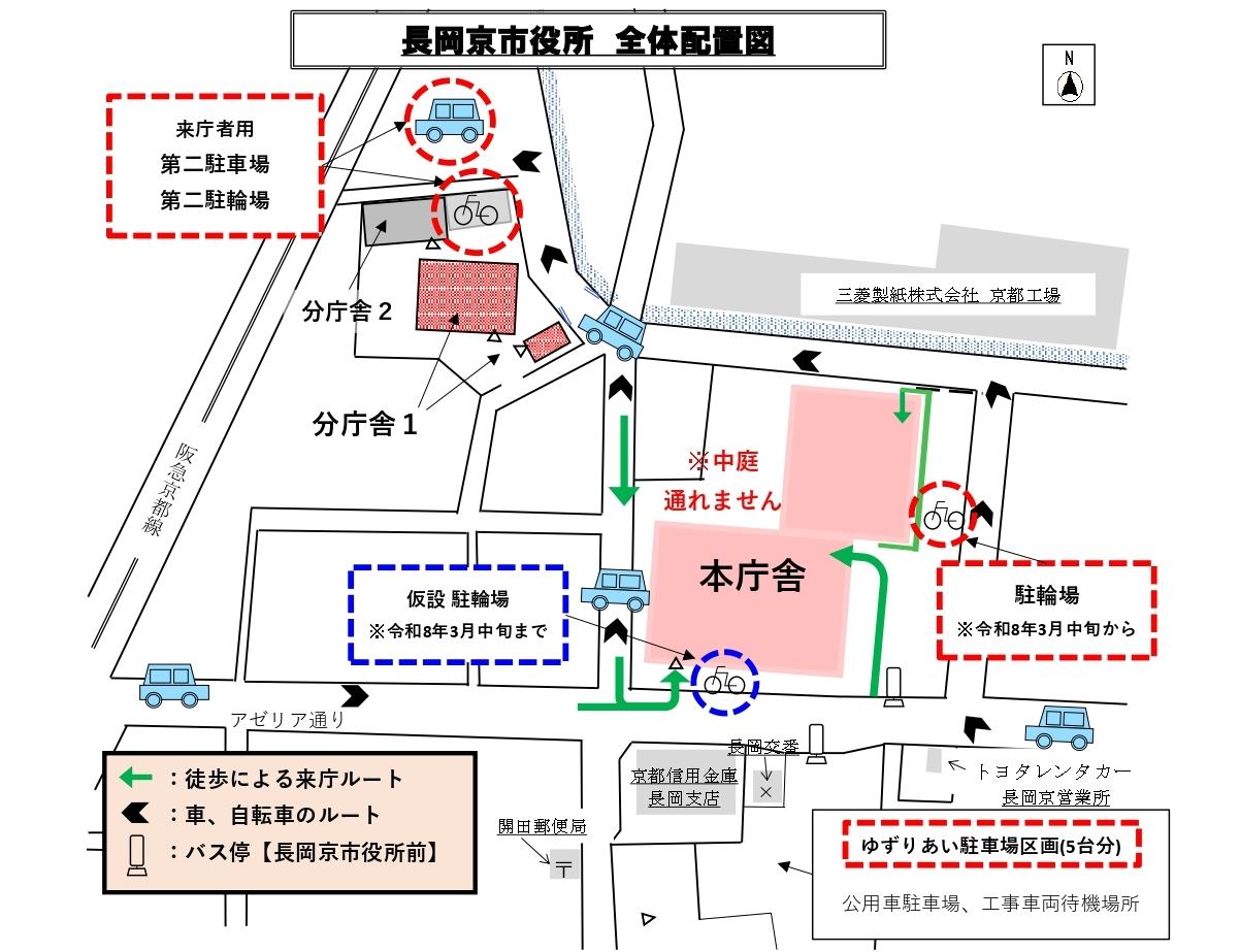 市役所に来庁される場合の動線や駐車場、駐輪場の場所について