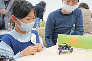 小学6年生の島津彩さんは、「はんだ付けは初めてだったけど、スタッフの方からしっかり教えてもらえたので楽しく参加できました。車が走ってうれしかったです」と笑顔で話してくれました。保護者からは「はんだ付けの工作は、なかなか家ではできないので、チャレンジできて良かったです」との感想がありました。島津さんとペアを組んだサポートスタッフの池上さんは、これまでもプログラミング等の出前授業で小学生と触れ合う機会があったそうです。「ロボットを間近にして目をキラキラさせる子どもたちを見てきました。『子どもの科学離れ』と言われていますが、科学の楽しさや村田のことを知ってもらいたいと積極的に参加しています」と語ってくれました。