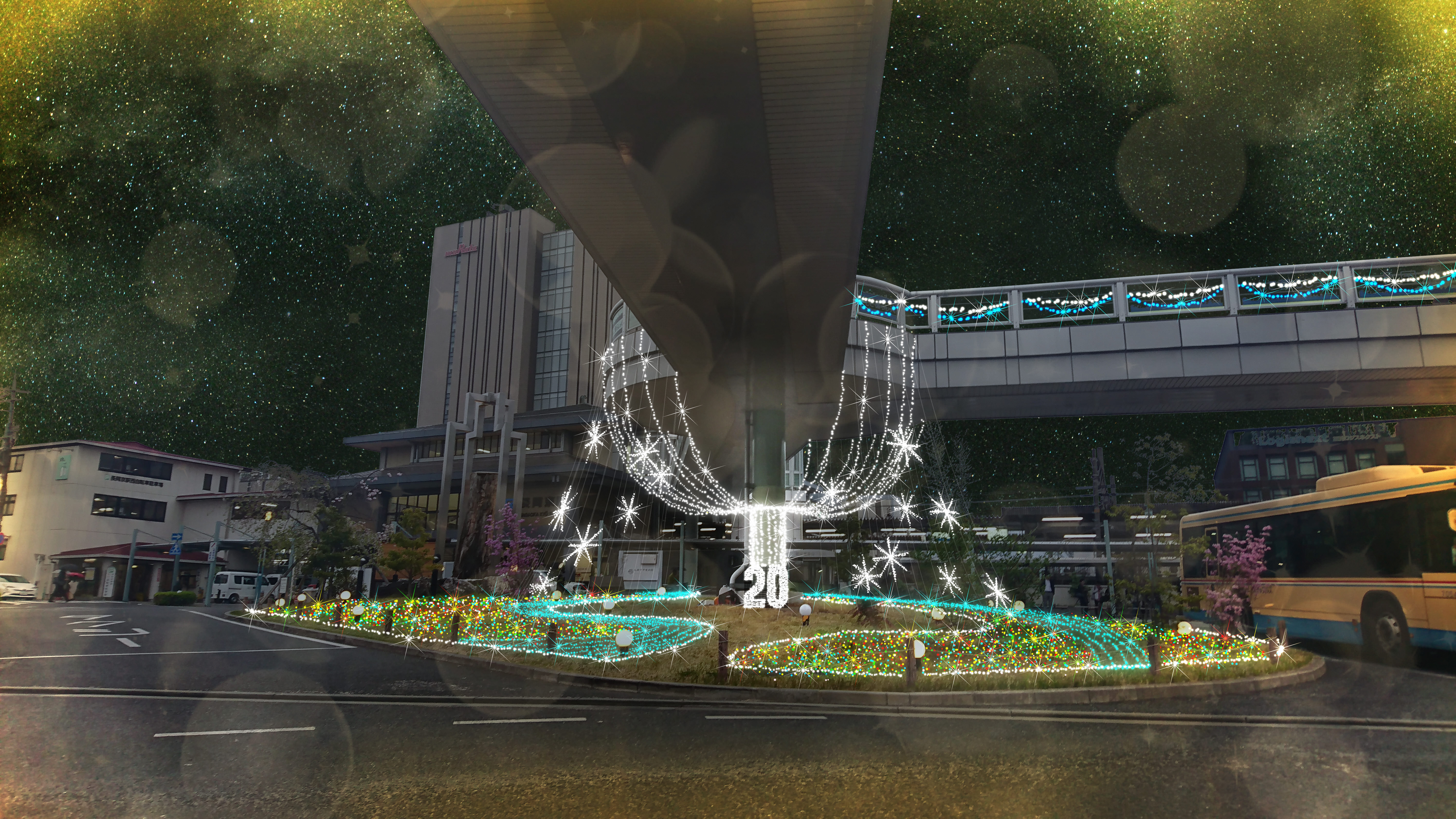 今年は、バンビオ20周年を記念して「Anniversary」をテーマに、これまでの歩みへの感謝と新たな未来への希望を込めたイルミネーションを実施します。長岡京市の名産である「竹」を使用して制作した“20”のオブジェには、映像を映し出すビジョンを組み込み、これまでのイルミネーションの軌跡や20年の想いを華やかに表現します。また、これまでのイルミネーションの装飾も再登場し、懐かしさと新しさが織りなす特別な空間が広がり、地元の子どもたちが作ったペットボトルランタンのあたたかな灯りが辺り一帯を優しく照らします。