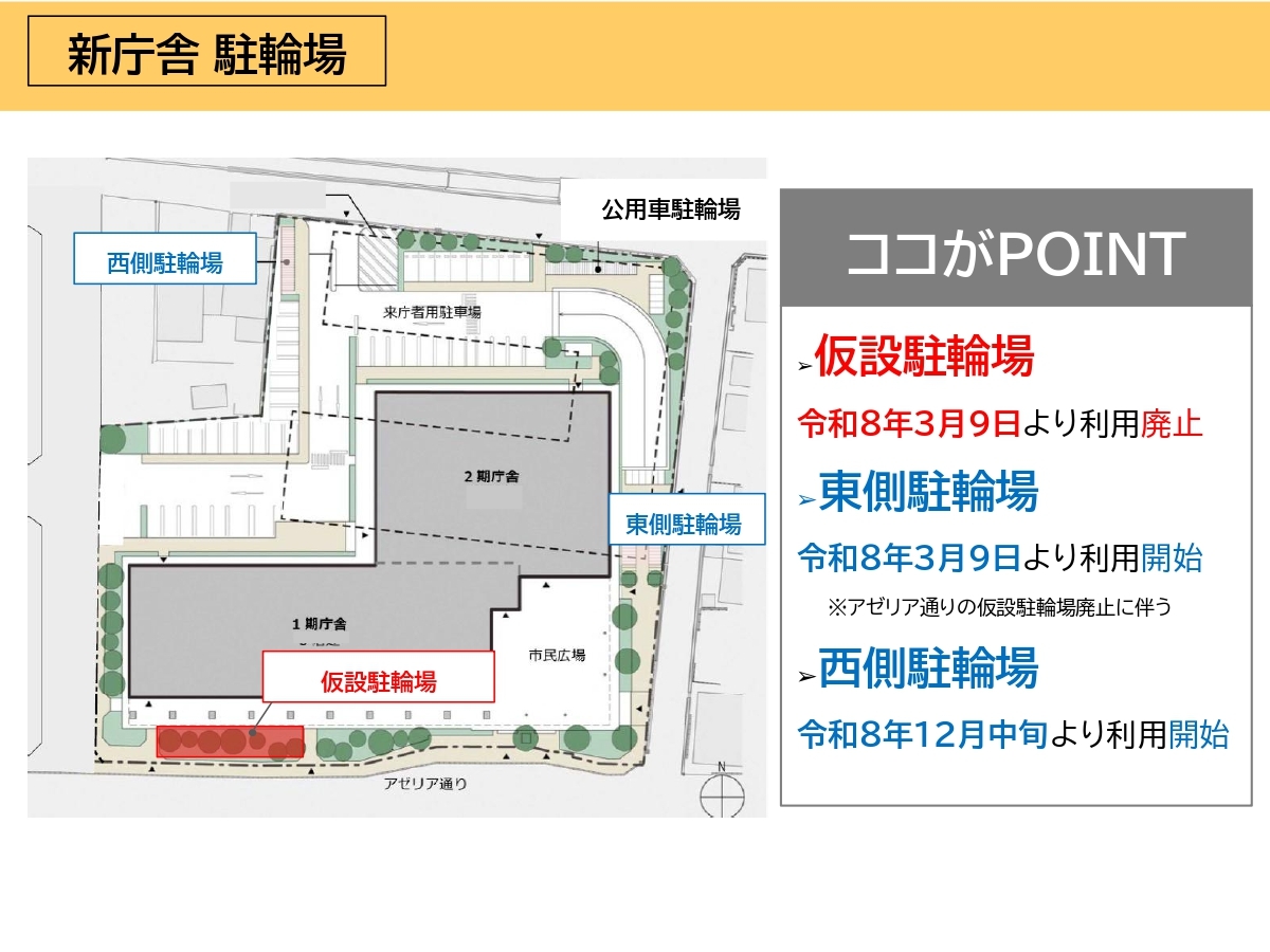※それに伴い、本庁舎南側に設置している仮設駐輪場は廃止いたしますので、ご注意ください。