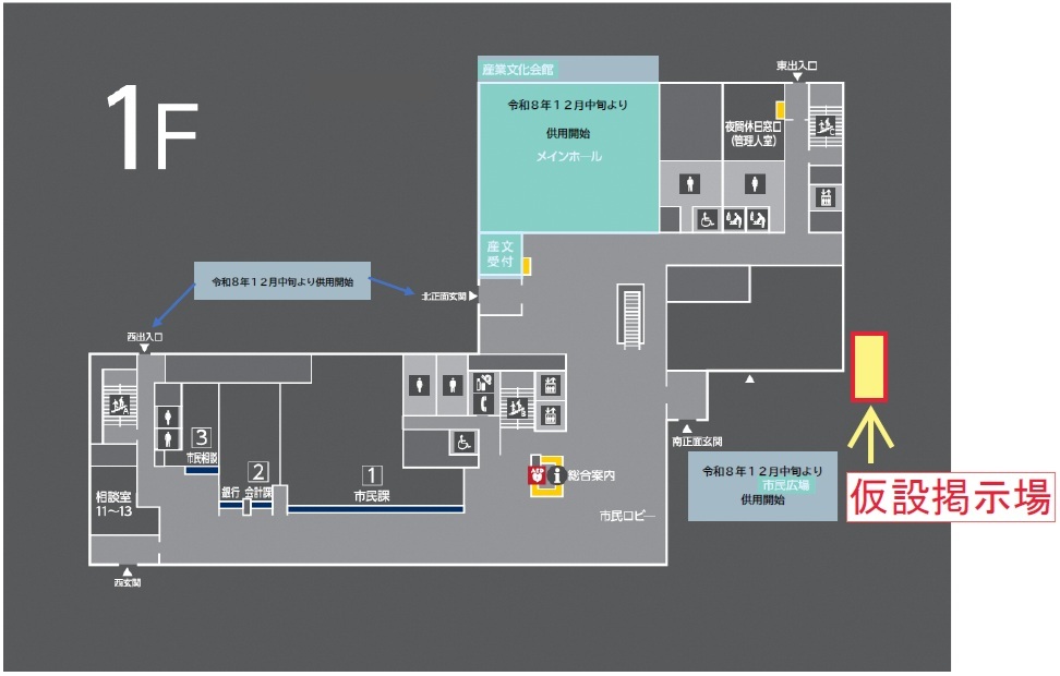 本庁舎南面外構工事に伴い、条例の公布等を行うために設置している本庁舎前掲示場を移設します。